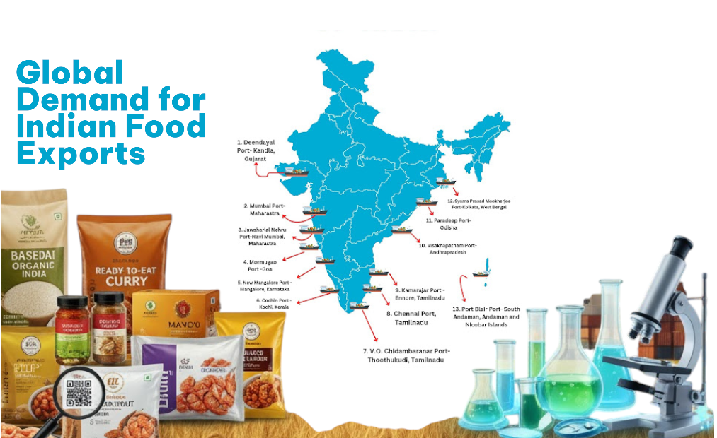 #Indian food export markets, #APEDA exports, #FSSAI testing, #EIC certification, #agri exports from India, #emerging food markets, #Indian processed food exports, #export opportunities 2025, #agricultural testing labs India